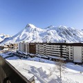 High above the shimmering waters of Tignes le Lac, this charming ski-in/ski-out apartment offers a perfect alpine retreat for families and friends. With breathtaking views of the Tufs, the Grande Motte glacier, and the serene lake below, every moment here is framed by the majestic beauty of the French Alps. Whether you're waking up to the soft glow of sunrise over the peaks or relaxing on the balcony after a day on the slopes, this property promises an unforgettable mountain escape. \n\nInside, the apartment is thoughtfully designed to accommodate up to eight guests, making it ideal for families or groups. The layout includes a cozy double bedroom with an en-suite shower room, a bunk bedroom perfect for children, and a comfortable living area with a sofa bed. The open-plan kitchen is fully equipped, allowing you to prepare hearty meals to enjoy in the inviting dining area. Modern amenities such as Wi-Fi, fresh linens, and beds made upon arrival ensure a seamless and relaxing stay. \n\nSituated in the heart of Tignes le Lac, the Bec Rouge residence places you just steps away from the slopes and the vibrant village center. Ski lifts, shops, and restaurants are all within easy reach, making it effortless to transition from thrilling alpine adventures to cozy evenings by the fire. In summer, the area transforms into a haven for hikers, bikers, and nature enthusiasts, with the lake offering opportunities for paddleboarding and picnics. \n\nWhether you're here to carve through pristine snow or bask in the summer sun, this apartment is your gateway to the best of Tignes. Let the crisp mountain air and stunning landscapes set the stage for cherished memories with loved ones.