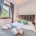 This modern chalet residence offers a luxurious alpine escape with para-hotel services for a seamless stay. The property includes three large chalets with stunning views of the Vanoise mountains and the village of Champagny-en-Vanoise. The 4-room apartment accommodates 6-8 guests with a master bedroom featuring an en-suite, a second bedroom with bunk beds, and a third with a double bed. Amenities include Wi-Fi, linens, towels, and end-of-stay cleaning (kitchen excluded). The apartment is non-smoking, and pets are not allowed.