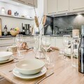 The apartment includes a fully equipped kitchen, ideal for preparing meals, and a bathroom with a bathtub, shower, and toilet. End-of-stay cleaning is mandatory, with the option for daily cleaning at an extra charge. Covered parking spaces are available upon reservation, and a tourist tax applies upon arrival. Wi-Fi access is available for an additional fee, ensuring a convenient and connected stay.