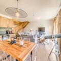 This spacious 4-room duplex apartment can accommodate 8 to 10 guests, making it perfect for larger families or groups. It features three comfortable bedrooms, including one with three double beds, as well as a sofa bed in the living room. The apartment is non-smoking and pets are not allowed. Enjoy modern amenities such as free WiFi, flat-screen TVs, and luxurious linens with beds made upon arrival. A refundable deposit of €2500 is required at check-in.