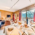 This spacious 93m² apartment, located in a charming hotel residence, comfortably accommodates up to 8 people. It features 3 bedrooms: 2 with double beds (160x200), and 1 with 2 bunk beds, a single bed, and drawer bed. The apartment includes 2 bathrooms with WC, a large living room with a dining area, and a furnished south-facing balcony with panoramic views. The property is non-smoking, and pets are not allowed. Bed and bathroom linens are provided, with beds already made upon arrival.