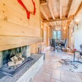 The chalet is equipped with a fully independent kitchen featuring a dishwasher, oven, microwave, and gas hob, as well as a large fridge/freezer and pantry with a washing machine and dryer. The spacious living room includes a fireplace, TV, sound system, and a dining area, offering comfort and entertainment. The chalet also boasts a large balcony/terrace and a wooded garden.