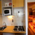 This cozy apartment, located on the first floor of a six-story residence, is ideal for 4-5 people. It features a double bed in a cabin, two bunk beds in the entrance, and a sofa bed in the living room. The apartment is non-smoking and allows pets with an additional fee. The bathroom includes a bathtub, and there is a separate toilet. A south-west facing balcony offers lovely views of the village and mountains, and the apartment is equipped with ski storage for your convenience.