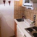 The apartment is equipped with a kitchenette featuring a mini oven, microwave, dishwasher, hotplates, fridge, and coffee maker, making it easy to prepare meals. The bathroom includes a walk-in shower, and there is a separate toilet for added convenience. Additional amenities include a television for entertainment and heating throughout the apartment. Sheets and towels are available for an additional charge