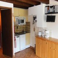 Inside, the apartment features a fully equipped kitchenette with a dishwasher, washing machine, oven, electric hob, and fridge, along with all necessary crockery. The spacious living area includes a dining space and a sofa for relaxation. The bathroom and separate toilet are on the first floor, while the second-floor under-roof bedroom adds to the charm and coziness of the space.