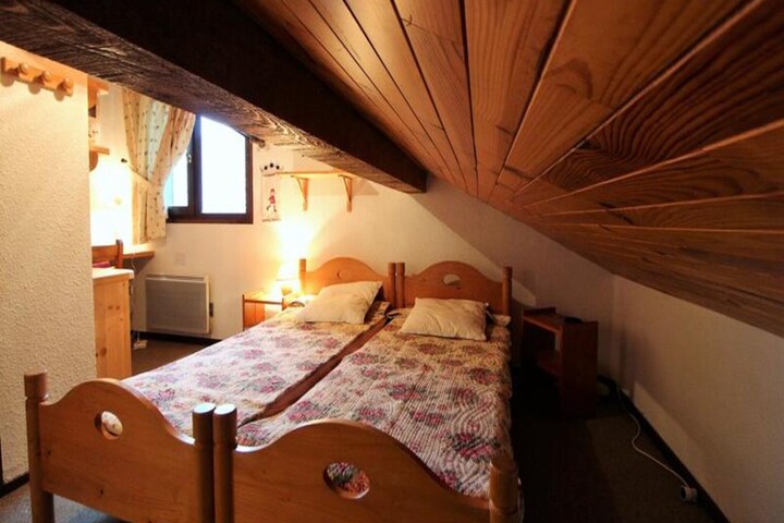 Nestled in the peaceful "Hauts de Planchamp" district, this duplex apartment offers a spacious 56 m² of comfort for up to 6 guests. The apartment features two levels, with the main level comprising a living room with a cozy fireplace and balcony overlooking the village and Vanoise glaciers. A well-equipped kitchenette, including a dishwasher, washing machine, oven, microwave, and fridge, caters to your self-catering needs. A bedroom with 2 bunk beds completes this floor, along with a bathroom with a bathtub and separate toilet.