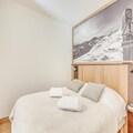 This new, cozy apartment, opening December 2022, accommodates up to six guests. It features two bedrooms with two single beds each and a double sofa bed in the living room. A west-facing balcony offers pleasant views. The residence, with only 14 apartments, includes covered parking, bicycle attachment rings, electric charging, and a ski locker with a shoe warmer. Pets are not allowed, and smoking is prohibited.