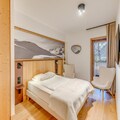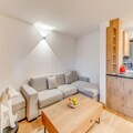This luxurious 3-room apartment in a newly opened 4* residence accommodates up to 6 guests. It features two double bedrooms, one with an en-suite bathroom and a washer/dryer, and the other with a private shower room. The spacious living room includes a double sofa bed, pellet stove, and TV. The apartment is non-smoking, pets are not allowed, and bed linens, towels, and final cleaning are included. A €1,500 security deposit is required at check-in.
