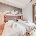 This modern 4* apartment, part of a new residence, is designed to comfortably accommodate up to 6 people. It includes a spacious living room with a pellet stove (pellets not provided), a dining area, and a fully equipped kitchen. The apartment has two cozy bedrooms, one with a double bed and the other with two single beds, both offering direct access to private balconies. A double sofa bed in the living area adds extra sleeping space. The apartment is non-smoking and pets are not allowed. A separate bathroom with a washer/dryer and a separate toilet are also available for convenience.