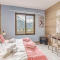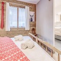 Spanning 160 m² across three levels, the chalet boasts spacious and thoughtfully designed interiors, ideal for families or groups of up to ten guests. The main floor features a cozy living room with a wood-burning stove, a dining area, and a fully equipped kitchen with modern appliances and a central island. Five beautifully appointed bedrooms, including a master suite with a private shower room and dressing area, ensure restful nights. Additional amenities such as a ski storage area with a boot dryer, a garage with two spaces, and three outdoor parking spots enhance the convenience of your stay. The chalet also offers a large bathroom with a bathtub, a baby dressing table, and two travel cots for families with young children.