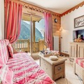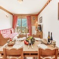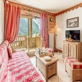 Inside, the apartment is thoughtfully designed to accommodate up to six guests across two cozy bedrooms and a pull-out sofa bed in the living room. The south-facing balcony invites you to soak up the sun while savoring the majestic mountain vistas. A fully equipped kitchen opens onto a warm and inviting living space, perfect for unwinding after a day of alpine exploration. Modern amenities such as Wi-Fi, TV, and a private ski locker ensure convenience and comfort throughout your stay. Guests also enjoy access to the residence's swimming pool, gym, and spa facilities, including a hammam and sauna, adding a touch of luxury to your holiday.