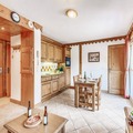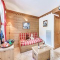 Each apartment is thoughtfully designed with comfort and convenience in mind. The garden-level unit accommodates up to four guests and features a cozy bedroom, a modern bathroom, and an open-plan kitchen and living area with a pull-out sofa bed. Step out onto the east-facing balcony to enjoy your morning coffee while gazing at the alpine landscape. Guests benefit from premium amenities, including Wi-Fi, a private garage, and complimentary bed and bathroom linen. The residence also boasts a heated swimming pool, a spa with hammam and sauna, and a fitness center, ensuring relaxation after a day of adventure.