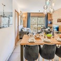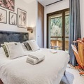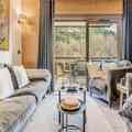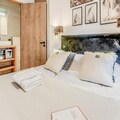 At the edge of the serene Vanoise mountain range, this luxurious apartment in the Terrasses de la Vanoise residence offers an unparalleled alpine retreat. With breathtaking views of the surrounding peaks and the charming village of Champagny en Vanoise just across the valley, this modern yet cozy accommodation invites you to experience the French Alps in style. Whether you're visiting in winter for skiing or in summer for hiking, the location is ideal for immersing yourself in nature and adventure. \n\nThe apartment spans 94 square meters and is thoughtfully designed to accommodate up to eight guests. It features three elegant bedrooms, including a north-facing master suite with an en-suite shower and a south-facing room with terrace access. The living space is warm and inviting, with a fully equipped kitchen, a spacious dining area, and a comfortable lounge complete with a Harman Kardon Bluetooth speaker and board games. Step out onto the south-facing terrace to soak up the sun or enjoy an alfresco meal surrounded by stunning alpine vistas. Modern amenities such as a Bosch washer-dryer, fiber optic internet, and a ski locker with a boot dryer ensure convenience and comfort throughout your stay. \n\nLocated just 500 meters from shops and ski lifts, the residence offers easy access to all village amenities. Free municipal shuttles run every 30 minutes during high season, connecting you to Champagny-le-Haut and other local attractions. In summer, the nearby swimming pool and spa provide relaxation after a day of exploring. With hotel-style services including Wi-Fi, linens, and end-of-stay cleaning, this property combines the comforts of home with the perks of a luxury stay. \n\nChoose this elegant apartment for your next alpine getaway and create unforgettable memories in the heart of the French Alps.