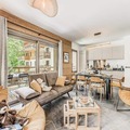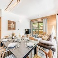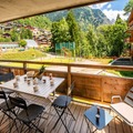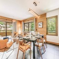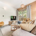 With panoramic views of the majestic Vanoise mountains and nestled in the charming hamlet of Villard Dessous, this premium apartment offers a luxurious alpine retreat just steps from the heart of Champagny en Vanoise. Whether you’re seeking a winter wonderland or a summer escape, the residence’s proximity to ski lifts, shops, and the village center ensures effortless access to everything you need for a memorable holiday. The free municipal shuttle, running every 30 minutes during high season, adds convenience for exploring the scenic surroundings, including Champagny-le-Haut and its breathtaking trails.\n\nThis elegant 3-room apartment with cabin accommodates up to six guests in style and comfort. The master suite boasts flexible sleeping arrangements with twin beds that can be combined into a double, a private shower room, and ample storage. A second bedroom features a plush double bed and TV, while the cozy sleeping area with bunk beds is perfect for children. The modern bathroom includes a bathtub and washer-dryer, ideal for longer stays. The fully equipped kitchen opens onto a spacious living and dining area, leading to an L-shaped balcony with dual north and east exposures, offering serene views of the village and surrounding peaks.\n\nGuests enjoy exclusive hotel services, including Wi-Fi, bed linen, towels, and end-of-stay cleaning (excluding the kitchen). The residence also features a covered parking space and a ski locker with boot dryer for added convenience. In summer, the nearby swimming pool and spa provide relaxation after a day of hiking or exploring.\n\nWhether you’re here to ski the pristine slopes or unwind amidst alpine beauty, this apartment combines modern luxury with the timeless charm of the French Alps, promising an unforgettable stay for families and friends alike.