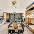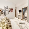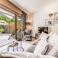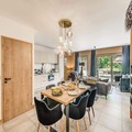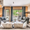 At the edge of the picturesque Vanoise mountains, this modern and elegant apartment in the Terrasses de la Vanoise residence offers a luxurious alpine retreat. Situated in the charming hamlet of Villard Dessous, just opposite the village of Champagny en Vanoise, the property boasts breathtaking views of the surrounding peaks and valleys. Whether you're visiting in summer or winter, the location provides easy access to the area's natural beauty and activities, with shops and ski lifts only 500 meters away and free municipal shuttles conveniently located 50 meters from the residence. \n\nThe apartment, located on the ground floor, is thoughtfully designed for comfort and style. It features a master suite with a double bed, TV, desk, and private shower room, as well as a cozy mountain corner with bunk beds. The spacious living room opens onto a south-facing terrace, perfect for soaking in the sun and admiring the stunning Vanoise landscape. A fully equipped kitchen, dining area, and modern amenities such as a washer-dryer, satellite TV, and Wi-Fi ensure a seamless stay. Guests also benefit from hotel services, including bed linen, towels, and end-of-stay cleaning. \n\nChampagny en Vanoise offers a wealth of activities year-round. In winter, enjoy world-class skiing and snowboarding, while summer invites you to explore hiking trails, relax by the nearby swimming pool, or indulge in spa treatments. The free shuttle service makes it easy to discover the charming surroundings, from Les Rochers to the serene Champagny-le-Haut. \n\nWhether you're seeking adventure or tranquility, this apartment combines modern comfort with the timeless allure of the French Alps, promising an unforgettable holiday experience.