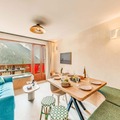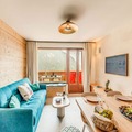 Above the charming village of Champagny-en-Vanoise, this beautifully renovated duplex apartment offers a serene alpine retreat with breathtaking south-facing views. Imagine mornings spent sipping coffee on your private balcony, soaking in the uninterrupted panorama of the surrounding peaks, before heading out to explore the nearby ski slopes or hiking trails. The peaceful setting of the Le Chardonnet residence ensures a relaxing stay while being just 200 meters from the village center, cable car station, and ESF ski school. Perfect for families and groups, this property combines modern comfort with authentic mountain charm. \n\nInside, the apartment spans two levels and accommodates up to seven guests. The first level features a welcoming entrance hall with storage, a cozy cabin with bunk beds, and a separate toilet. The open-plan kitchen is fully equipped with high-end appliances, including an induction hob, oven, microwave, and dishwasher, making meal preparation a breeze. The dining area, with its large wooden table and comfortable seating, flows seamlessly into the living room, where you’ll find a plush sofa, TV, and access to the balcony. Upstairs, the master suite boasts a double bed, en-suite shower room, and skylight, while the second bedroom offers flexible sleeping arrangements with three single beds. A modern bathroom with a shower, vanity unit, washing machine, and dryer completes the layout. \n\nBeyond the apartment, the residence provides convenient amenities such as a ski locker and elevator access. The village center is a short stroll away, offering shops, restaurants, and easy access to the slopes via the cable car. In summer, Champagny-en-Vanoise transforms into a haven for outdoor enthusiasts, with hiking trails, cycling routes, and the stunning Vanoise National Park nearby. Whether you’re seeking winter thrills or summer tranquility, this property is your gateway to unforgettable alpine adventures.