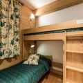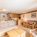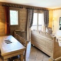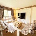 Designed to accommodate up to 8 guests, the apartment exudes a cozy chalet ambiance. The well-appointed living area features a TV and access to the balcony, while the fully equipped kitchen includes modern appliances such as a ceramic hob, multifunction oven, and Nespresso coffee maker. The sleeping arrangements are thoughtfully designed with three comfortable bedrooms, including two with en-suite shower rooms, a charming sleeping alcove with bunk beds, and additional sleeping options in the living room. The apartment also boasts a ski locker with boot dryers, ensuring your gear is ready for the next adventure.