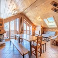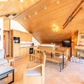 Spanning 106 m², this spacious apartment accommodates up to eight guests, making it perfect for families or groups of friends. The warm, chalet-style interiors feature three cozy bedrooms, including a master suite with an en-suite shower room, and a bunk room ideal for children. The open-plan kitchen is fully equipped for culinary adventures, while the inviting living room, complete with a TV and balcony access, provides the perfect space to unwind after a day on the slopes. Additional amenities include ski lockers with boot dryers, two garage spaces, and complimentary Wi-Fi.