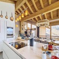 Spanning an impressive 200 m² across three levels, the chalet is equipped with an elevator for easy access. The bright living area on Level 0 invites relaxation with its open-plan kitchen featuring high-end appliances, a wine cellar, and a welcoming lounge that opens onto the terrace. Six beautifully appointed bedrooms, each with en-suite facilities, ensure privacy and restful nights for up to 14 guests. Additional amenities include a sauna, ski lockers with boot and glove dryers, and a private garage for two vehicles. The chalet is non-smoking and pet-free, ensuring a pristine environment for all guests.