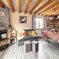 High above the Belleville Valley, where alpine serenity meets thrilling adventure, this charming family house offers an unforgettable escape in Saint Martin de Belleville. At an altitude of 1,450 meters, this picturesque village is part of the world-renowned Les 3 Vallées ski area, boasting 600 kilometers of pristine slopes and state-of-the-art facilities. Whether you’re seeking exhilarating runs or tranquil moments, Saint Martin combines exceptional skiing with a warm, authentic mountain lifestyle. Just 450 meters from the village center and ski lift, this property places you at the heart of it all. \n\nThis typical Bellevilloise house spans 90 square meters and comfortably accommodates up to six guests. The first floor features a cozy living and dining area with a television, a sofa bed, and direct access to a west-facing terrace, perfect for soaking in the alpine views. The open-plan kitchen is fully equipped with modern appliances, including a dishwasher, oven, and coffee maker, ensuring all the comforts of home. Upstairs, two inviting bedrooms await: one with twin beds and balcony access, and another with a double bed and its own balcony. Two bathrooms, each with a shower and toilet, provide convenience for families or groups. \n\nSaint Martin de Belleville offers more than just skiing. Its charming village atmosphere, local shops, and gourmet restaurants create a delightful blend of activity and relaxation. In summer, explore hiking trails that wind through lush meadows and discover breathtaking vistas of the surrounding peaks. With amenities like bed linen and towels included during winter stays, this property ensures a seamless and comfortable holiday experience. Whether you’re here for powder-filled adventures or tranquil alpine escapes, this home is your gateway to the magic of Les 3 Vallées.