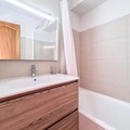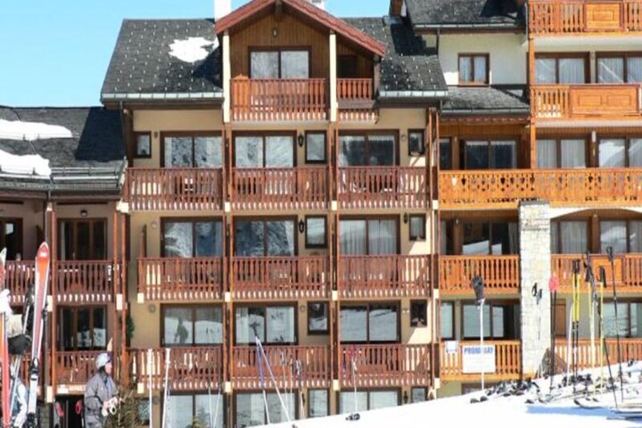 This 45 m² apartment is thoughtfully designed to accommodate 4 to 5 guests, making it ideal for families or small groups. The main bedroom features a comfortable double bed, while the mezzanine provides two single beds and a bunk bed, ensuring flexible sleeping arrangements. The living area, free from distractions like television, opens directly onto the balcony, creating a peaceful space to relax after a day on the slopes. The well-equipped kitchen includes ceramic hobs, a refrigerator, a dishwasher, and all the essentials for preparing hearty meals. A bathroom with a bathtub, a separate WC, and a washing machine add to the convenience of your stay.