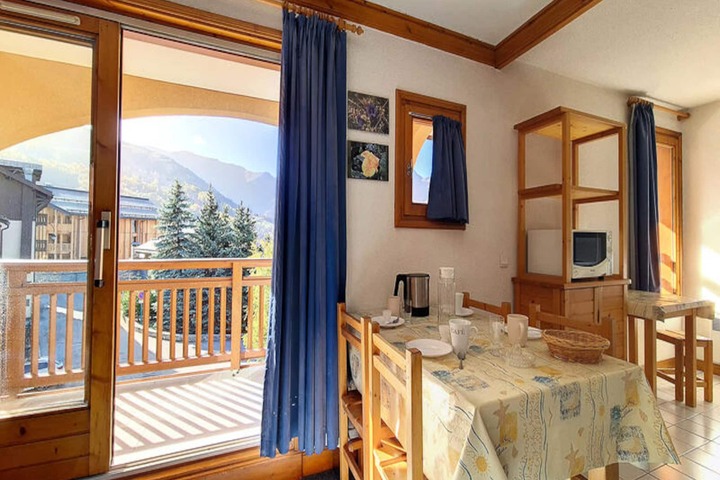 In the picturesque Grangeraies district, where alpine charm meets modern convenience, this inviting apartment offers a cozy retreat for your mountain adventures. With the Saint Martin 1 gondola lift just steps away, you’ll have direct access to the renowned 3 Valleys ski area, making it an ideal base for exploring one of the largest ski domains in the world. The south/west-facing balcony provides a serene spot to soak in the breathtaking views and golden sunsets over the snowy peaks, creating an atmosphere of tranquility and inspiration. \n\nThis 47 m² apartment comfortably accommodates up to six guests across its thoughtfully designed layout. The master bedroom features a plush double bed, while the second bedroom offers two single bunk beds, perfect for families or groups of friends. The living room includes a double sofa bed, satellite TV, and a warm, welcoming space to unwind after a day on the slopes. The well-equipped kitchen boasts modern appliances such as a mini-oven, refrigerator, dishwasher, and microwave, ensuring you can prepare hearty meals with ease. A separate bathroom with a bathtub and a separate WC add to the convenience and comfort of your stay. \n\nLocated just a 10-minute walk from the village center, you’ll find grocery stores, sports equipment shops, and ski schools within easy reach. Whether you’re seeking thrilling descents, peaceful walks through snow-covered trails, or a taste of local Savoyard cuisine, this location places you at the heart of it all. In winter, enjoy the added comfort of included linens, towels, and ski locker access for stays of seven nights or more. \n\nChoose this charming apartment for a memorable alpine escape, where every detail is designed to enhance your experience. From its prime location to its cozy interiors, it’s the perfect haven for creating unforgettable moments in the French Alps.