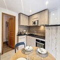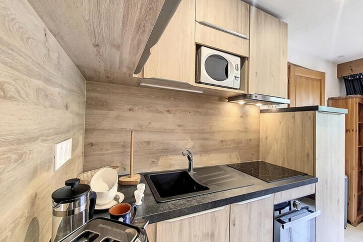 In the serene Grangeraies district of Saint-Martin-de-Belleville, this charming ground-floor apartment offers a cozy retreat with direct access to the world-renowned 3 Valleys ski area. Imagine stepping out of your door and being just moments away from the Saint Martin 1 gondola lift, ready to whisk you into a winter wonderland of pristine slopes and breathtaking alpine views. The tranquil surroundings, combined with the convenience of nearby shops and ski services, create the perfect setting for an unforgettable mountain getaway. \n\nThis 47 m² apartment is thoughtfully designed to accommodate up to four guests. The inviting living room features a comfortable sofa and television, perfect for relaxing evenings after a day on the slopes. The sleeping arrangements include a double bedroom and an alcove with two single beds, ensuring a restful night for all. The fully equipped kitchen, complete with a rotisserie grill, microwave, and dishwasher, makes meal preparation a breeze, while the southwest-facing balcony offers a delightful spot to soak in the mountain air and stunning views. Additional amenities include a modern bathroom with a shower and washing machine, as well as a separate WC for added convenience.\n\nA short 10-minute stroll will take you to the heart of the village, where you can explore charming shops, enjoy local cuisine, or simply immerse yourself in the warm, welcoming atmosphere of Saint-Martin-de-Belleville. Whether you're here for the thrill of skiing, the allure of the alpine scenery, or the peaceful village charm, this apartment is your ideal base for a memorable holiday. With bed linens, towels, and kitchen essentials included in winter stays of seven nights or more, you can settle in effortlessly and focus on creating lasting memories in the heart of the French Alps.