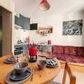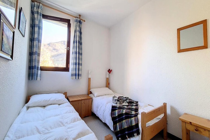 In the charming Grangeraies district of Saint Martin de Belleville, this cozy alpine apartment offers a welcoming retreat for your mountain getaway. Just a two-minute walk from the Saint Martin 1 gondola lift, you’ll have direct access to the world-renowned 3 Valleys ski area, where endless slopes and breathtaking vistas await. The village center, with its quaint shops and local services, is only a five-minute stroll away, ensuring convenience and a touch of authentic Savoyard charm. The residence is accessed via an external staircase, adding a rustic touch to your arrival. \n\nThis thoughtfully designed 42m² apartment is located on the third floor of the Les Murgers residence and comfortably accommodates up to six guests. The layout includes a cozy bedroom with two single beds, a living room featuring two single sofa beds, and an additional sleeping area with a single sofa bed and pull-out bed. The south-west-facing balcony invites you to soak up the alpine sun while enjoying views of the surrounding peaks. A fully equipped kitchen with ceramic hobs, refrigerator, oven, dishwasher, washing machine, kettle, and Nespresso coffee machine ensures you can prepare delicious meals after a day on the slopes. Modern amenities like a TV, DVD player, and a ski locker add to the convenience of your stay. \n\nThe residence’s prime location means you’re close to everything you need, from ski schools and equipment rentals to grocery stores and après-ski options. In winter, guests staying for seven nights or more are treated to included bed linen, towels, and other essentials, making your holiday even more seamless. Whether you’re here to carve through pristine snow or explore the area’s hiking trails in summer, this apartment is the perfect base for your alpine adventures. \n\nWith its blend of comfort, practicality, and unbeatable location, this property promises an unforgettable stay in the heart of the French Alps. Let the magic of Saint Martin de Belleville and the 3 Valleys inspire your next mountain escape.