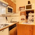 Inside, the apartment spans 45m² and features a thoughtful layout designed to accommodate up to six guests. The upper level includes a bedroom with three single beds and a cozy alcove with one single bed, while the living room provides additional sleeping space with a double sofa bed. The fully equipped kitchen invites you to prepare hearty meals after a day of adventure, complete with modern appliances such as an oven, microwave, refrigerator, and dishwasher. Relax in the comfortable living area with a television or step out onto the south/west-facing balcony to soak in the alpine views. The apartment also includes a bathroom with a bathtub, separate WC, and a ski locker for added convenience.