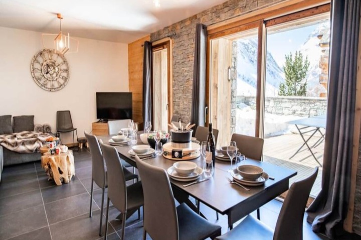 High above the picturesque Bonneval-sur-Arc, where the majestic peaks of the French Alps cradle the valley, La Marmotte residence offers a serene escape for mountain lovers. Imagine afternoons bathed in golden sunlight on your private 30m² terrace, overlooking the breathtaking valley views, while the crisp alpine air refreshes your senses. This west-facing gem is perfectly situated in the Tralenta area, just steps away from the Vallonnet chairlift, making it an ideal choice for ski enthusiasts seeking effortless access to the slopes. Ski in, ski out convenience ensures every moment is spent embracing the beauty of the mountains. \n\nInside, the apartment welcomes you with its modern yet cozy decor, designed to blend comfort with sophistication. The spacious living room opens onto the terrace, offering a lounge area with a plush sofa, a dining space, and a fully equipped kitchen featuring high-end appliances like a dishwasher, induction hob, oven, microwave, and Nespresso machine. With three thoughtfully arranged bedrooms, including a dormitory with bunk beds and two double rooms, this property comfortably accommodates two families or a group of friends. Additional amenities such as Wi-Fi, a ski locker with a boot dryer, and an indoor parking space just 50 meters away ensure a seamless stay. \n\nBeyond the residence, Bonneval-sur-Arc invites you to explore its charming alpine village atmosphere, with local restaurants like La Marmotte adding a touch of regional flavor to your experience. Whether you're skiing down pristine slopes or enjoying summer hikes through lush trails, the surrounding area offers endless opportunities for adventure. With ski lesson cards and passes delivered directly to the residence and exclusive discounts on rentals, every detail has been carefully curated to enhance your holiday. \n\nLa Marmotte residence is more than just a place to stay—it's a gateway to unforgettable moments in the heart of the Alps. Book now and let the magic of Bonneval-sur-Arc transform your next getaway.