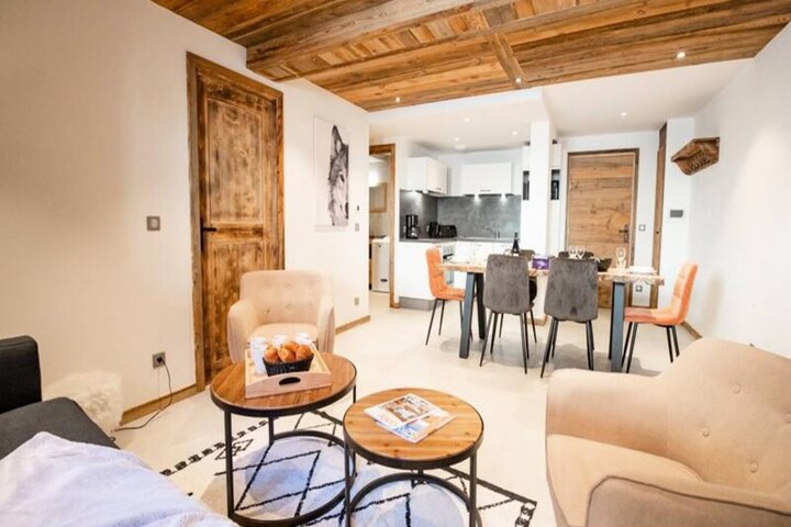 In the picturesque village of Bonneval-sur-Arc, surrounded by majestic alpine peaks, this charming apartment in the La Marmotte residence offers a perfect blend of comfort and convenience for your mountain getaway. With the Vallonnet chairlift just across the street, you can step out the door and ski directly to the slopes, making it an ideal choice for winter sports enthusiasts seeking hassle-free access to the pristine snow-covered trails of the region. The tranquil setting and breathtaking views create an atmosphere of serenity and adventure all year round. \n\nInside, the apartment boasts a modern and welcoming decor, designed to make you feel at home. The living room features a cozy seating area and a dining space, perfect for relaxing after a day of exploration. The fully equipped kitchen includes an induction hob, oven, microwave, and all the essentials for preparing delicious meals. The double bedroom, with its comfortable 140x200 cm bed and ample natural light, offers a peaceful retreat, while two additional sleeping areas with bunk beds provide flexible accommodations for families or groups of friends. A bathroom with a washing machine and a separate toilet add to the convenience, and the ground-floor ski locker with a boot dryer ensures your equipment is ready for the next adventure. \n\nBeyond the apartment, Bonneval-sur-Arc invites you to explore its authentic charm, with cobblestone streets, traditional stone houses, and a welcoming atmosphere. Whether you're skiing in winter or hiking in summer, the village serves as a gateway to the stunning landscapes of the Vanoise National Park. Nearby, you'll find options for ski lessons, equipment rental, and discounted lift passes, all arranged seamlessly through Altitude 1750. \n\nThis residence combines modern comforts with alpine tradition, offering unforgettable moments for families and friends alike. Book your stay today and experience the magic of Bonneval-sur-Arc in every season.