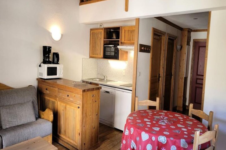 In the serene village of Bessans, where the alpine air is crisp and the landscapes are breathtaking, this charming duplex studio offers a perfect retreat for nature lovers and adventure seekers alike. Surrounded by the majestic peaks of the Haute-Maurienne Valley, this 3-star residence combines modern comfort with authentic mountain charm, making it an ideal destination for families and couples seeking tranquility and outdoor exploration. The unique high-altitude plateau setting ensures exceptional sunshine and panoramic views year-round. \n\nLocated on the second floor of the Clos Vanoise residence, the studio boasts a cozy north-facing balcony overlooking the picturesque Bonneval area. Inside, the space is thoughtfully designed with a mezzanine featuring two single beds and a living room with a comfortable double sofa bed. The well-equipped kitchen includes a ceramic hob, electric oven, microwave, dishwasher, and refrigerator, ensuring you have everything needed to prepare meals after a day of adventure. A flat-screen TV and free Wi-Fi add to the convenience, while the bathroom with a bathtub and separate toilet provides all the essentials for a relaxing stay.\n\nThe residence itself offers fantastic amenities, including a shared lounge with a fireplace, a regional restaurant, and secure underground parking (additional charge). Ski lockers and bicycle storage are available, making it easy to transition between winter sports and summer activities. Just steps away, you’ll find cross-country ski trails, hiking paths, and essential services such as shops, daycare, and bus stops. \n\nBessans is a haven for those seeking unspoiled nature and wide-open spaces. Whether you’re gliding through pristine snow in winter or exploring verdant trails in summer, this destination promises unforgettable moments in the heart of the French Alps. Discover the charm of this peaceful village and create lasting memories in this exceptional setting.