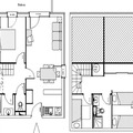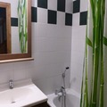 Bathrooms: A bathroom with bathtub and sink. A separate toilet. Upstairs, a shower room with sink and toilet.