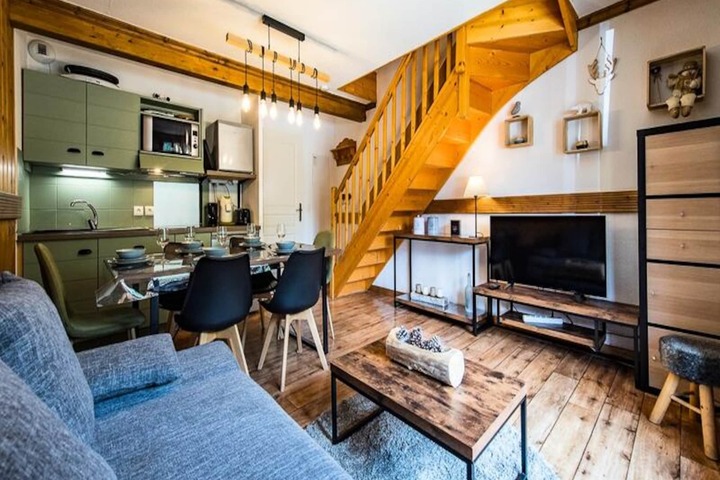At the gateway to the picturesque resort of Saint-Sorlin-d'Arves, this charming duplex apartment offers a cozy alpine retreat with all the comforts you need for a memorable holiday. The Les Chalets de l'Arvan II residence is ideally located less than 50 meters from a shuttle stop and just 700 meters from the slopes, making it perfect for ski enthusiasts and nature lovers alike. During the summer months, guests can enjoy the residence's outdoor swimming pool, open from July 5th to August 30th, adding a refreshing touch to your mountain getaway. \n\nThe apartment is thoughtfully designed with warm, inviting decor and a south-facing orientation that floods the space with natural light while offering stunning views of the surrounding mountains and slopes. The living room opens onto a sunny terrace, creating the perfect spot to relax after a day of adventure. On the ground floor, you'll find a TV lounge and dining area alongside a fully equipped kitchen, as well as a separate toilet. Upstairs, the south-facing master bedroom features a comfortable double bed, while the second bedroom includes a single bed and bunk beds, ideal for families. A bathroom with a bathtub and toilet completes the layout. Additional amenities include a ski locker, free parking, and the convenience of beds made upon arrival. \n\nSaint-Sorlin-d'Arves is a haven for outdoor enthusiasts, offering a wealth of activities year-round. In winter, the slopes of Les Sybelles ski area provide endless opportunities for skiing and snowboarding, while summer brings hiking trails, cycling routes, and breathtaking alpine scenery. The village itself is brimming with charm, featuring local shops, restaurants, and cultural events that showcase the unique character of the region. \n\nWhether you're seeking thrilling winter sports or tranquil summer escapes, this apartment is your gateway to the beauty and adventure of the French Alps. Book now and create unforgettable memories with family or friends in this idyllic mountain setting.