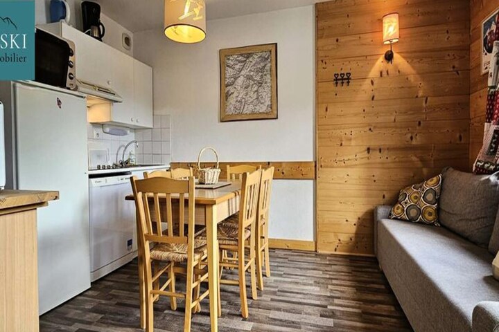 This charming apartment, located on the 3rd floor of a residence in the heart of the Saint Sorlin d’Arves resort, is ideal for a group of up to 6 guests. The property features a sleeping area with a bunk bed, a cozy bedroom with a double bed, and a living room with a sofa bed. The apartment is pet-free, ensuring a peaceful environment for all guests. A ski locker and reserved parking space are included, offering convenience for those planning to hit the slopes. Please note that sheets, towels, and Wi-Fi are optional and can be added for an additional fee.