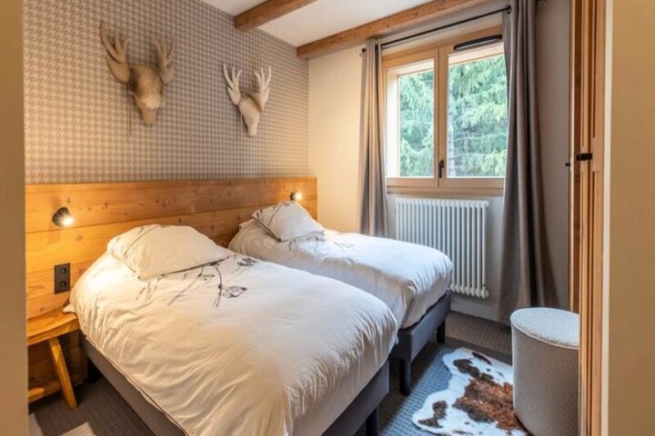 This brand-new apartment offers comfort and elegance with three spacious bedrooms and three well-appointed bathrooms, ideal for up to 8 guests. The master suite features a double bed, while the other two rooms include a set of bunk beds and two single beds. The apartment is pet-free, ensuring a peaceful stay. Sheets and towels are provided, and a refundable deposit of €500 is required. With a central location in Méribel's Morel district, the apartment offers easy access to the slopes, just 350 meters from the Doron blue slope and 280 meters from the Morel chairlift.