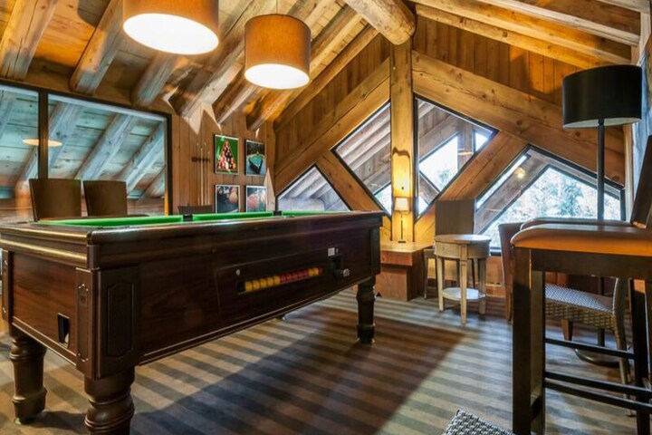 Ideally located near the Les 3 Vallées ski slopes, the apartment offers easy access to 600 km of skiing. Non-skiers can enjoy snowshoeing, dog sledding, and exploring nearby cafes, restaurants, and markets. The residence provides wellness facilities, including an indoor heated pool, sauna, and fitness center, perfect for unwinding after outdoor activities.