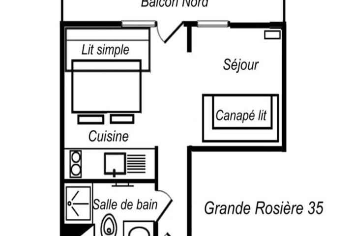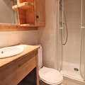 The apartment, rated 2 stars and bearing the Méribel Label for its charm, is designed to comfortably host 2 to 3 guests. Its divisible layout creates a sense of privacy, with a double sofa bed in the living room and a single sofa bed in the dining area. The open kitchenette is fully equipped with ceramic hobs, a refrigerator, microwave with grill, dishwasher, and essential appliances like a coffee maker and toaster. After a day on the slopes, unwind in the cozy living space or step onto the north-facing balcony to soak in the crisp alpine air. Modern touches like a flat-screen TV and free Wi-Fi (subject to availability) ensure a comfortable stay.
