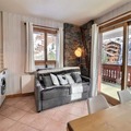 Inside, the apartment is thoughtfully designed to accommodate up to six guests. The living room features a comfortable Rapido sofa bed, while the bedroom offers a cozy double bed. A separate cabin with bunk beds provides additional sleeping space, making it perfect for families or small groups. The open-plan kitchenette is equipped with modern amenities, including a Nespresso machine, ceramic hobs, and a washer-dryer, ensuring all the comforts of home. After a day on the slopes, unwind on the northeast and south-facing terrace or relax in the living area with the Smart TV and free internet access.
