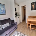 High above the bustling Chatelet shopping center, this charming studio apartment in the Olympie 1 residence offers a cozy alpine retreat for up to four guests. Imagine waking up to the crisp mountain air and stepping onto your west-facing balcony to take in the serene views of the slopes and surrounding peaks. Perfectly positioned just 100 meters from the main ski lift and 50 meters from the shuttle bus stop, this property ensures effortless access to the winter wonderland of the French Alps. Whether you're here for skiing adventures or summer hikes, the convenience and comfort of this location are unmatched. \n\nInside, the studio is thoughtfully designed to maximize space and comfort. The sleeping alcove features bunk beds, ideal for families or small groups, while the living room boasts a Rapido sofa bed for restful nights. A well-equipped kitchenette includes modern appliances such as a microwave with grill, refrigerator, dishwasher, and Nespresso coffee maker, making meal preparation a breeze. The bathroom is compact yet functional, and modern touches like a flat-screen TV and Bluetooth speaker ensure entertainment and relaxation after a day on the slopes. With a non-smoking policy and pet-friendly accommodations, this studio caters to diverse needs. \n\nStep outside and find yourself immersed in the vibrant atmosphere of Chatelet, with its convenient shops, dining options, and the ESF meeting point just moments away. Families will appreciate the proximity to the Piou-Piou kindergarten, while outdoor enthusiasts will love the easy access to ski lifts and shuttle buses. In summer, the area transforms into a haven for hikers and nature lovers, with trails leading to breathtaking vistas. \n\nWhether you're seeking thrilling alpine adventures or tranquil mountain escapes, this studio in Olympie 1 is the perfect base for creating unforgettable memories in the heart of the French Alps.