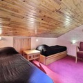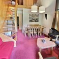 Inside, the apartment spans 55 square meters and is thoughtfully designed to accommodate up to eight guests. The cozy living room features a sofa bed, three armchairs, and a fireplace, creating a warm and inviting space to unwind after a day on the slopes. The kitchen is fully equipped with modern appliances, including ceramic hobs, a refrigerator, dishwasher, oven, microwave, and essential small appliances like a coffee maker and toaster. The sleeping arrangements are versatile, with two bedrooms and a mezzanine loft offering a mix of single and double beds to suit families or groups of friends. The property also boasts two bathrooms, one with a washing machine, and a separate toilet for added convenience.