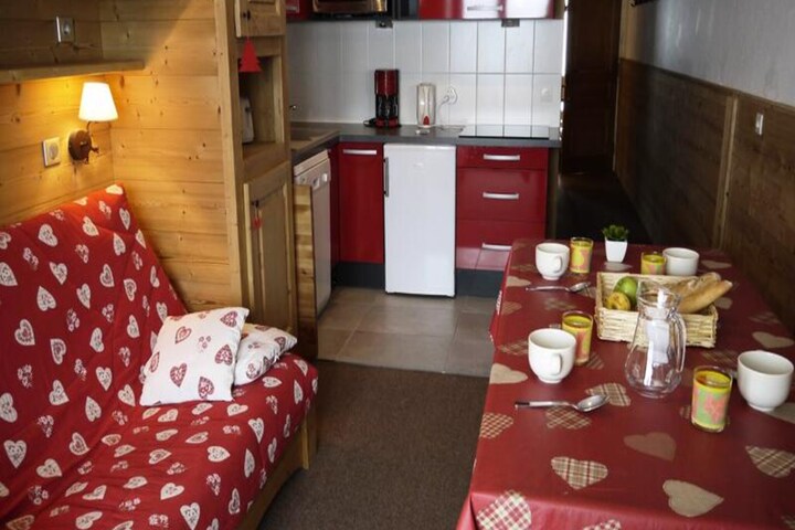 High above the picturesque slopes of Méribel Mottaret, this charming apartment offers a tranquil retreat with breathtaking views of Mont Vallon. Imagine mornings filled with golden sunlight streaming through the windows, and evenings spent gazing at the snowy peaks from your private balcony. Whether you're here for thrilling ski adventures or serene alpine escapes, this residence promises an unforgettable stay in the heart of the French Alps. \n\nThe apartment has been thoughtfully renovated and proudly holds the prestigious Méribel Label, ensuring quality and comfort throughout. It features a cozy living room with a sofa bed and a television, a welcoming bedroom with a double bed, and a well-equipped kitchenette complete with a ceramic hob, dishwasher, combi oven, refrigerator, and coffee makers for your convenience. The modern shower room and separate toilet add to the practicality, while the ski locker and elevator make your stay hassle-free. This non-smoking property is perfect for couples or small families seeking a peaceful getaway. Additional services such as linens, towels, cleaning, and baby equipment can be arranged to enhance your experience. \n\nSituated in the quiet Provères residence, the apartment enjoys a prime location between Le Hameau and the bustling center of Méribel Mottaret. With ski-in/ski-out access, you'll be on the slopes in no time, while the resort's vibrant center is just a short stroll away. Here, you'll find ski schools, shops, bars, and restaurants, all contributing to the lively atmosphere of this alpine gem. \n\nWhether you're exploring the pristine trails, indulging in Savoyard cuisine, or simply soaking in the majestic views, this apartment is your gateway to the magic of Méribel. Book now and create memories that will last a lifetime.