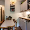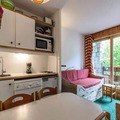 In the serene alpine village of Méribel Mottaret, this charming studio apartment offers a cozy retreat for up to four guests. With its warm ambiance and thoughtful amenities, it’s the perfect base for exploring the majestic French Alps. The residence, Le Pralin, is ideally situated at the foot of the slopes, ensuring effortless ski-in/ski-out access for winter sports enthusiasts. Families will appreciate its proximity to the kindergarten and the Châtelet shopping center, just a short stroll away. The resort center, with its vibrant atmosphere and array of shops, is conveniently located 300 meters from the property. \n\nInside, the studio is designed for comfort and functionality. The living room opens onto a terrace and features two sofa beds and a television, creating a welcoming space to relax after a day on the slopes. A sleeping alcove with bunk beds provides additional sleeping arrangements. The kitchenette is well-equipped with an electric hob, combi oven, dishwasher, kettle, toaster, coffee maker, and refrigerator, making it easy to prepare meals during your stay. A modern shower room with a toilet completes the layout. Additional conveniences include a ski locker, elevator access, and optional services such as linens, towels, and end-of-stay cleaning, ensuring a hassle-free holiday.\n\nMéribel Mottaret is a haven for outdoor enthusiasts, offering year-round activities. In winter, enjoy world-class skiing and snowboarding in the heart of the Three Valleys, the largest ski area in the world. During the summer months, the region transforms into a paradise for hikers and mountain bikers, with trails that wind through breathtaking alpine landscapes. Whether you’re seeking adventure or relaxation, this studio apartment provides the perfect setting for an unforgettable mountain getaway.