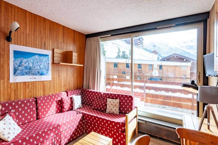 In the charming alpine village of Méribel Mottaret, this cozy studio apartment offers a delightful retreat for up to four guests. Perfectly positioned in the prestigious Le Ruitor residence, it provides unparalleled access to the slopes, shops, and the vibrant resort center. Imagine starting your day with a warm cup of coffee on your private balcony, overlooking the snowy peaks, before stepping out to explore the world-renowned Three Valleys ski domain. Whether you're here for winter sports or summer hikes, this location ensures you're always at the heart of the action. \n\nThe apartment is thoughtfully designed to maximize comfort and functionality. The entrance hall features a set of bunk beds, while the living room offers two sofa beds and a television, creating a welcoming space to unwind after a day of adventure. The kitchenette is fully equipped with modern appliances, including a ceramic hob, oven, dishwasher, and Nespresso coffee maker, making it easy to prepare meals at home. A renovated shower room with a toilet adds a touch of modern convenience, while the ski locker and elevator in the residence enhance your stay. Please note that the apartment is non-smoking and pets are not allowed, ensuring a clean and peaceful environment for all guests.\n\nMéribel Mottaret's resort center is just steps away, offering a lively atmosphere with a variety of shops, bars, and restaurants. The ESF ski school and cinema are also within easy reach, making this an ideal destination for families and groups of friends. In the summer, the area transforms into a haven for outdoor enthusiasts, with scenic hiking trails, mountain biking routes, and breathtaking views of the surrounding Alps.\n\nWhether you're seeking thrilling ski adventures or a tranquil mountain escape, this studio apartment in Méribel Mottaret promises a memorable holiday experience. With its unbeatable location and cozy amenities, it’s the perfect base for exploring the beauty of the French Alps.