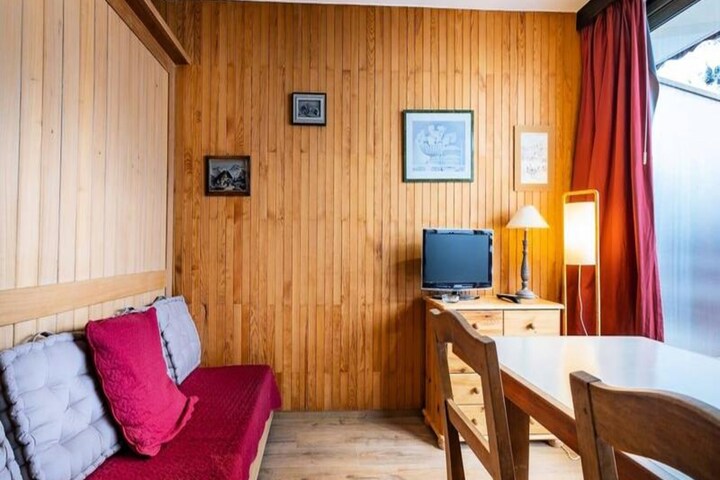 In the heart of Méribel Mottaret, this charming apartment on the 5th floor of the Le Ruitor residence offers a cozy alpine retreat with unparalleled convenience. Imagine waking up to the crisp mountain air, stepping out onto your private balcony, and taking in the breathtaking views of the surrounding peaks. This is your gateway to one of the most renowned ski destinations in the French Alps, where adventure and relaxation blend seamlessly. \n\nThe apartment is thoughtfully designed to maximize comfort and functionality. The living room features a double bed that slides under a partition, a set of bunk beds, and a television, creating a versatile space for up to four guests. The kitchenette is fully equipped with a stovetop, oven, Nespresso coffee maker, dishwasher, and refrigerator, making it easy to prepare meals after a day on the slopes. A bathroom with a toilet and access to a ski locker and elevator complete the amenities, ensuring a hassle-free stay. Please note, this is a non-smoking property, and pets are not allowed.\n\nStep outside, and you'll find yourself in the vibrant center of Méribel Mottaret. The ESF ski school, shops, bars, restaurants, and even a cinema are all just moments away. Whether you're a seasoned skier or a beginner, the proximity to the slopes and ski lifts makes this an unbeatable location for winter sports enthusiasts. In the summer, the area transforms into a haven for hikers and nature lovers, offering endless trails and stunning alpine landscapes.\n\nWith additional services like sheet and towel rentals, end-of-stay cleaning, and baby equipment available upon request, your stay will be as comfortable as it is memorable. Whether you're here for the thrill of skiing or the tranquility of the mountains, this apartment is the perfect base for your alpine adventure.
