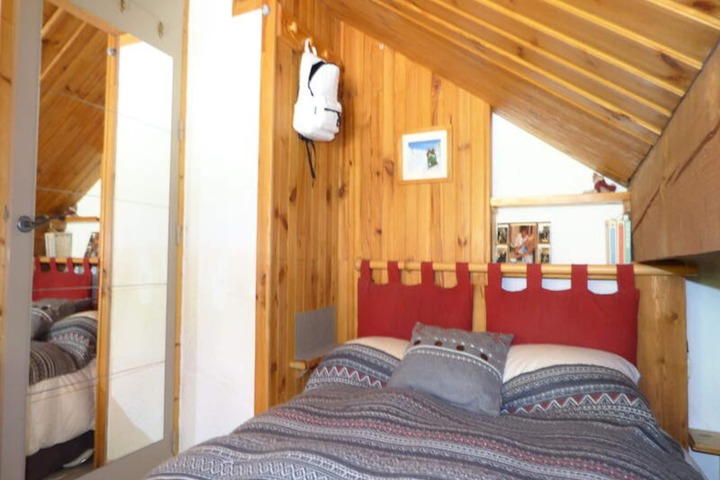 Designed to accommodate up to six guests, this 44m² apartment is thoughtfully arranged for comfort and practicality. The living area features a warm fireplace (wood not provided) and a fully equipped open-plan kitchen with a ceramic hob, microwave, dishwasher, and refrigerator with freezer. The sleeping arrangements include a double bedroom, a second bedroom with a single bed and trundle bed, and a cozy cabin with bunk beds, perfect for families or small groups. A bathroom with a bathtub and a separate toilet ensures convenience for all. Modern amenities such as Wi-Fi, a television, a washing machine, and a ski locker enhance your stay.