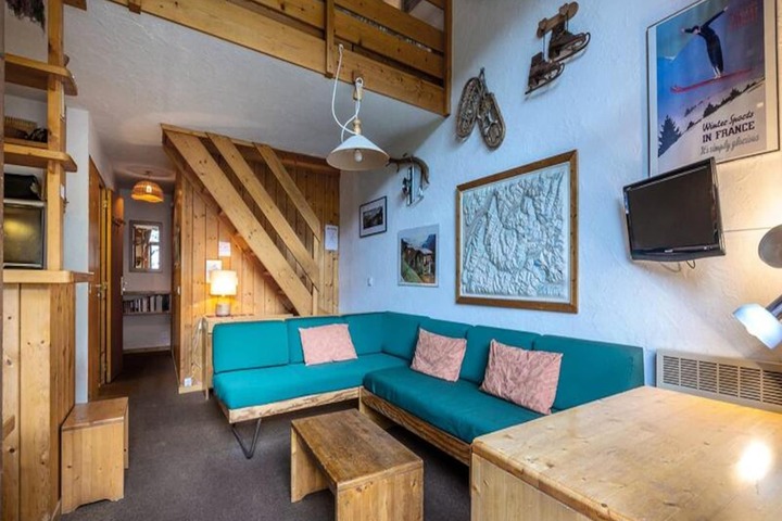 In the serene alpine setting of Méribel Mottaret, this charming duplex apartment offers a cozy retreat for mountain enthusiasts. With its warm interiors and thoughtful design, it’s the perfect base for families and groups seeking an unforgettable escape. Situated in the peaceful Le Châtelet neighborhood, the residence is just a short walk from the slopes, shops, and the picturesque Lake Tueda, making it ideal for both winter sports and summer adventures. \n\nThe apartment comfortably accommodates up to eight guests across two levels. The main floor features a welcoming living room with two sofa beds, a television, and a DVD player, opening onto a private terrace where you can soak in the crisp mountain air. The open kitchen is fully equipped with modern appliances, including an electric hob, oven, microwave, dishwasher, and coffee maker, ensuring you have everything needed to prepare hearty meals after a day on the slopes. Upstairs, you’ll find a mezzanine with two single beds, an attic cabin bedroom with bunk beds, and an attic bedroom with two single beds. Additional amenities include a ski locker, secure garage, private Wi-Fi, and the convenience of optional services like linens and end-of-stay cleaning.\n\nBeyond the comfort of the apartment, the location is a haven for outdoor lovers. In winter, enjoy direct access to the slopes and explore the expansive Three Valleys ski area. The nearby Lake Tueda is a favorite for snowshoeing and cross-country skiing. In summer, the area transforms into a paradise for hikers and nature enthusiasts, with trails leading through stunning alpine landscapes. \n\nWhether you’re seeking thrilling adventures or tranquil moments in nature, this apartment in Méribel Mottaret offers a perfect blend of comfort, convenience, and breathtaking surroundings.