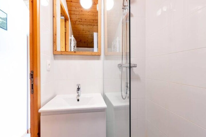 Perched above the serene Lake Tueda and framed by the majestic Mont Vallon, this charming alpine apartment in Méribel Mottaret offers a seamless blend of comfort and adventure. Imagine waking up to breathtaking views of snow-dusted peaks and stepping directly onto the Aigle slope for an effortless ski-in ski-out experience. Whether you're here for winter sports or summer hikes, this residence places you in the heart of the French Alps' natural beauty. The nearby ESF meeting point ensures easy access to ski lessons, while the funicular connects you to the resort center and shops for added convenience. \n\nInside, the apartment is thoughtfully designed for up to nine guests. The cozy living room features a single sofa bed, a comfortable sofa, and a television, creating a welcoming space to unwind after a day of alpine adventures. The kitchenette is fully equipped with modern appliances, including a ceramic hob, oven, microwave, dishwasher, and coffee maker, making meal preparation a breeze. Upstairs, the mezzanine boasts two attic bedrooms—one with three single beds and another with a double bed—alongside a shower room with a toilet. A separate bedroom with a double bed and a bathroom on the main floor ensures privacy and comfort for all guests. The balcony offers a tranquil spot to soak in the mountain views, while amenities like a ski locker and elevator enhance your stay. \n\nThe residence of Les Plattières is perfectly situated for exploring Méribel Mottaret's attractions. Beyond skiing, the area transforms into a summer paradise with hiking trails, vibrant alpine flora, and the shimmering Lake Tueda. Reserve a parking space for added ease and enjoy the convenience of nearby shops and dining options. Whether you're seeking thrilling slopes or peaceful moments in nature, this apartment is your gateway to unforgettable alpine memories.