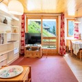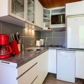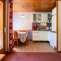 Inside, the apartment is thoughtfully designed for comfort and convenience. The master bedroom features a cozy double bed, while the second bedroom is equipped with a bunk bed, making it ideal for families or small groups. The bathroom includes a bathtub for relaxing soaks after a day on the slopes, and there’s a separate toilet for added privacy. The open-plan kitchen flows seamlessly into the spacious living and dining area, where a comfortable sofa and television invite you to unwind after your adventures.