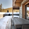 The apartment boasts three luxurious en-suite bedrooms, each featuring a king-size bed (one twinnable) and modern bathrooms with premium amenities. The open-plan living room, with its cozy ambiance and fully equipped kitchen, opens onto a spacious terrace where you can soak in the serene beauty of the surrounding forest and slopes. A guest toilet in the hallway adds to the convenience, ensuring every detail is tailored to your comfort.